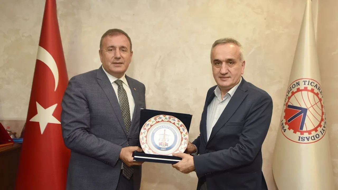 Trabzon Kent Konseyi Başkanı Prof. Dr. Hakan Karal, tartışmalara neden olan Ulusal İklim Değişikliği ve Su Sempozyumu’na sağladığı destekten dolayı Trabzon Ticaret ve Sanayi Odası (TTSO) Başkanı Erkut Çelebi’ye teşekkür plaketi sundu. Kent Konseyi heyeti, TTSO’yu ziyaret ederek minnettarlıklarını dile getirdi.
